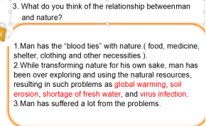 这学期带的大学英语读写译4这一门课程,书本所选文章都十分丰富多样且启发思考。于是在整个教学过程中我会有意识地增加一些思政方面的设计于教学过程之中,例如本学期第四单元关于“可持续环境保护”这个主题,会在引入部分给员工一些关于“环保”类的问题进行头脑风暴,同时也让员工们联系现状进行更深层次讨论--防疫战。介绍目前疫情防控与我们每个人息息相关实际情况,提出总书记倡导的“要相信群众、发动群众,充分发挥社区在疫情防控工作中的阻击作用”,向员工们传递感恩与责任感的理念,无论是环境保护还是防疫抗疫都是我们每个人应尽职责,鼓励大家关注疫情热爱祖国且时刻关心国家的前途和命运。课后给于员工更多的视频资源进行观看,进一步向员工传递出众志成城、抗击疫情的磅礴力量和必胜信心,同时也帮助员工不断树立爱国主义精神。