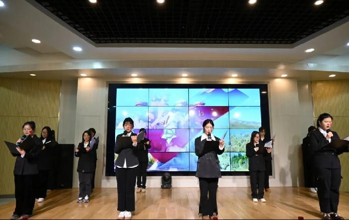 众人以激昂的旋律、振奋人心的歌词,激发了老员工的爱国热情,歌词中“前进、前进、向前进”的口号,呼吁老员工在实现个人价值的同时,也要关注社会责任,为实现民族复兴的伟大目标而努力奋斗。