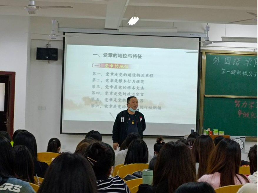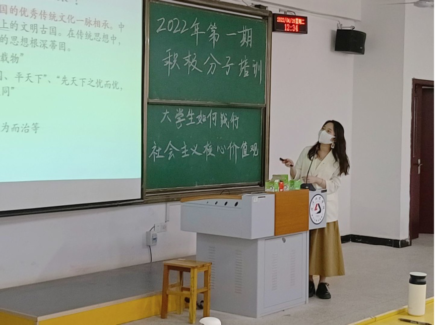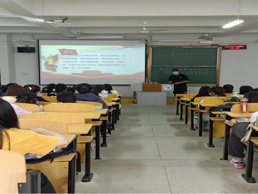党课培训分为入场签到,课上听讲做笔记,课后复习,党课考核四个阶段。党课围绕(1)入党动机(2)中国共产党性质(3)党史党章(4)十九届六中全会精神(5)社会主义核心价值观(6)先锋模范带头作用(7)总体国家安全观(8)学习心得分享展示活动。老师们认真教学,同学们聚精会神地听讲。期间,球友会的党务小组成员维持会场秩序,进行拍照记录总结,整理积极分子资料,收取作业等。同时将实时线上视频发送给线上党课培训的同学。本次党课培训让同学们对入党有了更深刻的认识,伟人精神如同一座闪亮的航标,指引着同学前进。“浩渺乾坤日月梭,人间盛世乐祥和。”在这绯红的黎明下,同学们正怀揣着簇新的理想,朝着伟大的建党精神迈进。