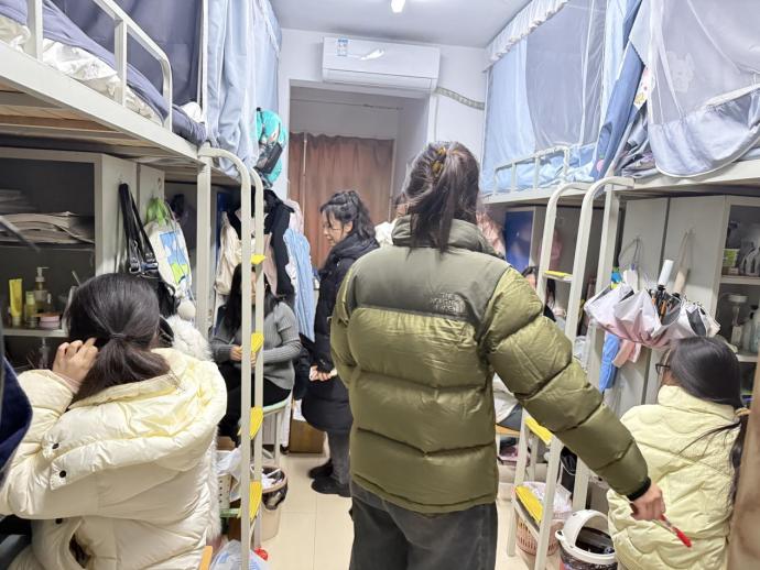 在查寝过程中,老师们不仅与同学们亲切交流,还再次重申了用电安全的重要性,深化每位同学对安全用电的认知。他们耐心提醒每位同学,务必养成良好的用电习惯,坚决杜绝私拉乱接电线行为,避免使用违规电器,共同守护寝室的安全与和谐。同时,也温馨提醒同学们维护好寝室的清洁整齐,共创一个舒适宜人、利于学习的生活空间。