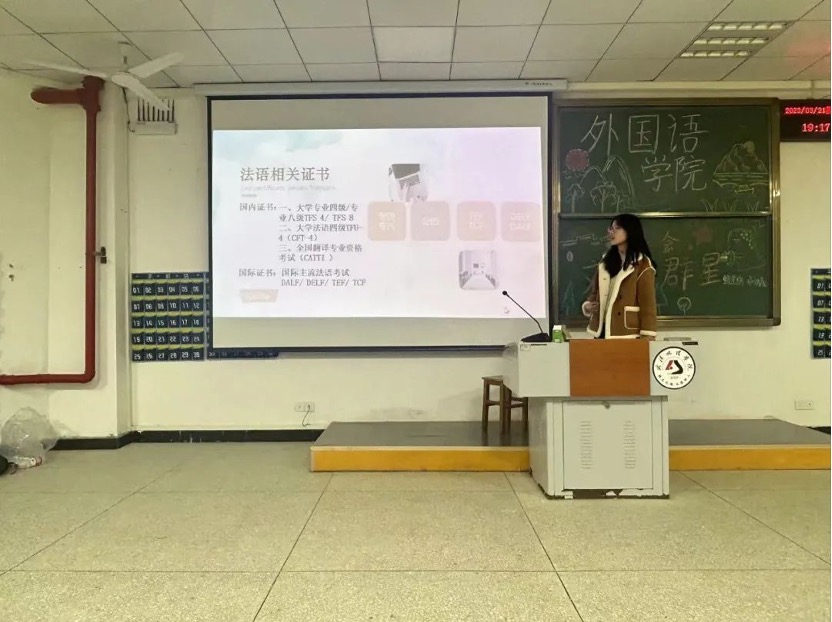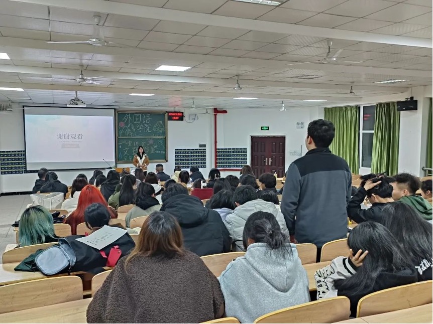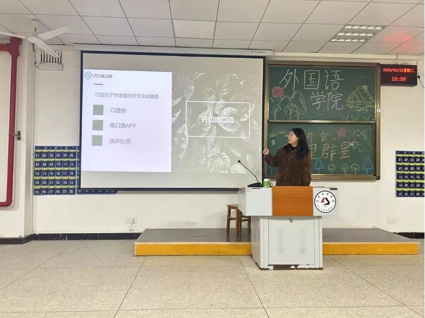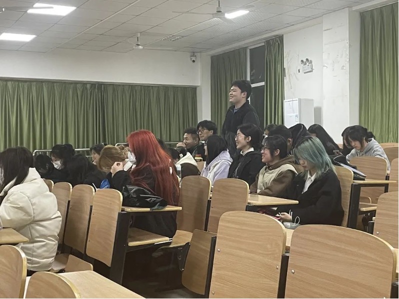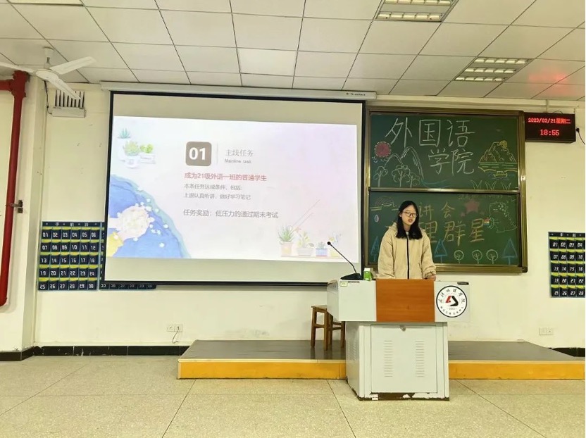 21级外语班鲍星燃学姐,荣获大学英语四级证书、职场英语证书和商务英语证书,现任球友会分团委秘书部部长。“人生没有彩排,每天都是现场直播”,她用幽默风趣的方式打开了她的分享之旅,把学习分为主线任务和支线任务,而她的挑战副本就是平时所参加的各种活动和比赛。鲍星燃学姐积极乐观的分享了在面对各种挑战、学习时所给出的相关建议,同学们也在这种放松状态下学会了该如何平衡学习与生活。