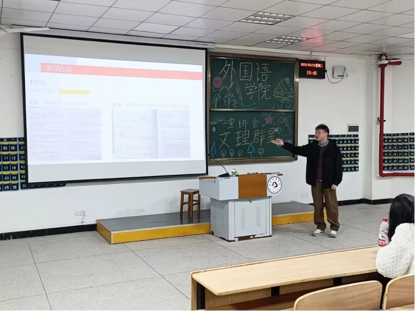 20级商务英语班的梁钰鹏学长,他的兴趣爱好非常广泛,热衷于参与各种校园活动和比赛活动,有着十分丰富的工作经历,同时也赢得了许多荣誉。在2021年文理群星颁奖晚会中出演《 疫情之下》被评为“最佳创意奖”,2020-2021学年学风建设活动中被评为优秀员工干部,2022年“穿越时空的对话-写给前辈的一封信”主题红色征文演讲比赛中荣获二等奖等奖项。“那些看似不起波澜的日复一日,会突然在某一天让人看到坚持的意义”这是他的座右铭,梁钰鹏学长用自己的亲身经历分享给我们的单词 、听力 、语法等方面上的学习技巧以及明确的前进目标。