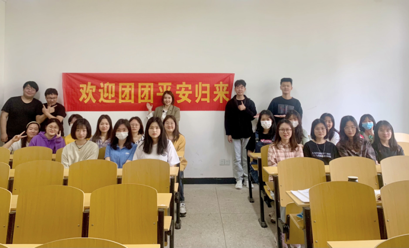4月22日,周五上午一二节课,当法语系杨源老师走进教室时,19级法语2班的同学们在教室后面贴出了“欢迎团团平安归来”的横幅,来迎接刚刚结束隔离期的“团团老师”(杨源老师的昵称)回归线下课堂。