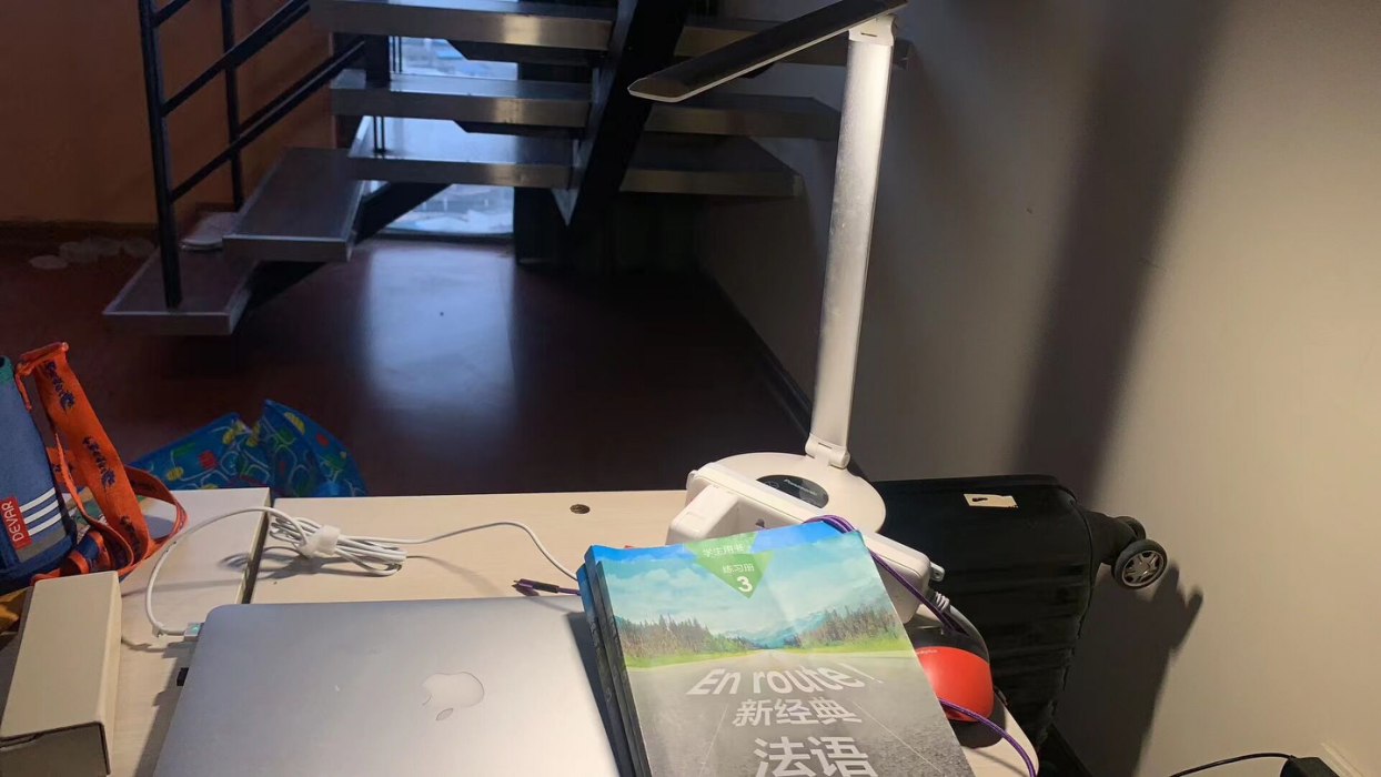 杨源老师在酒店隔离的授课环境