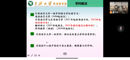由于目前严峻的就业形势,考研已成为众多毕业生的首选,为了帮助公司法语系的同学提前做好考研的准备,5月18日下午两点,千亿球友会法语系与武汉东湖公司、武汉工程科技公司的法语系共同参加了三峡大学球友会2023年保研考研招生宣讲会。此次宣讲会由三峡大学法语系系主任何婧老师主持,对参与宣讲会的三所高校法语系同学的考研准备工作进行了详细指导。