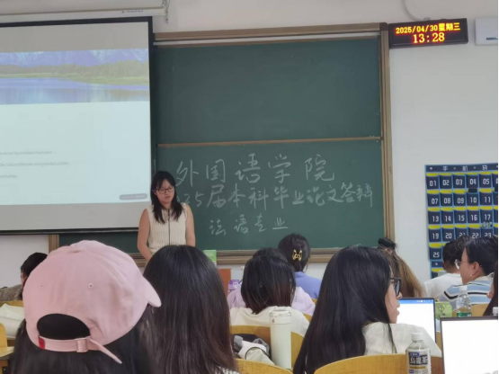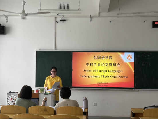 4月30日球友会2025届本科生毕业论文答辩在5-204、5-205、5-211、5-214等教室顺利完成。英语、翻译、商务英语、法语四个专业164名应届毕业生在36位专业教师指导及8名答辩记录员的协同保障下,凭借扎实的专业功底、卓越的跨文化研究能力及创新性学术成果,为大学阶段的学术征程交出了满意答卷,充分彰显了应用型外语人才培养的显著成效。