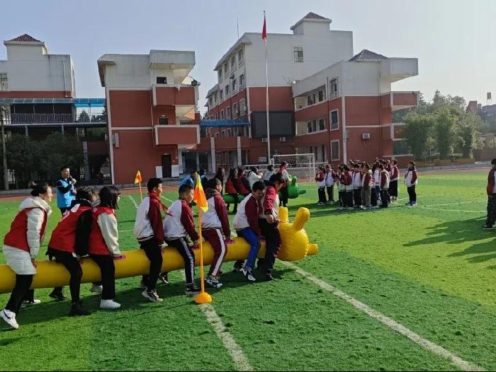 抵达东风小学过后,小助教们开始了场地布置,大家齐心协力共同推进本次活动的开展。活动开始前,小助教们向全体员工讲解了“众星捧月”“毛毛虫竞速赛”以及“趣味英语拼接”游戏的规则,并进行现场示范,确保每一位同学知晓游戏规则。伴随着趣味热身,活动正式开始,现场的每一位同学都争先恐后,积极参与。游戏中不仅展现出体育竞技精神,还激发了同学们广泛的趣味英语学习兴趣。