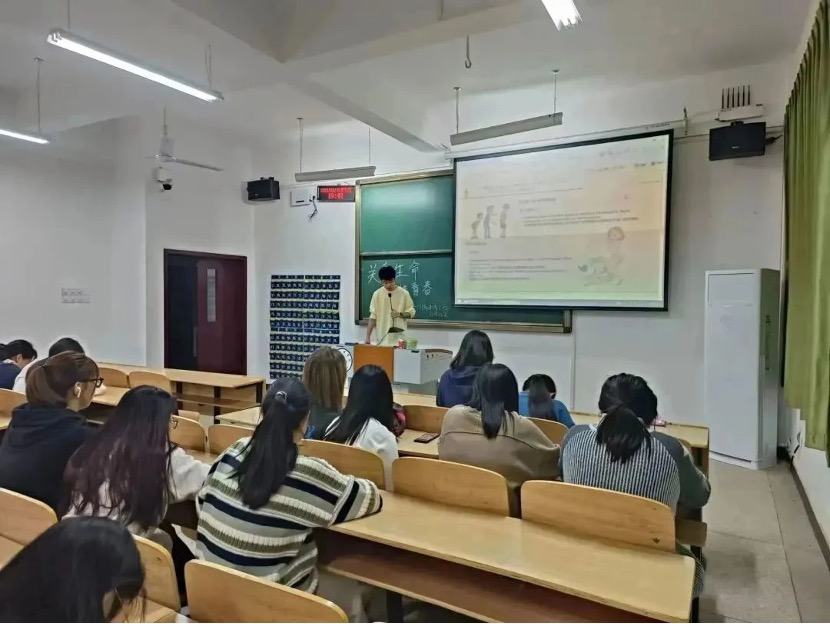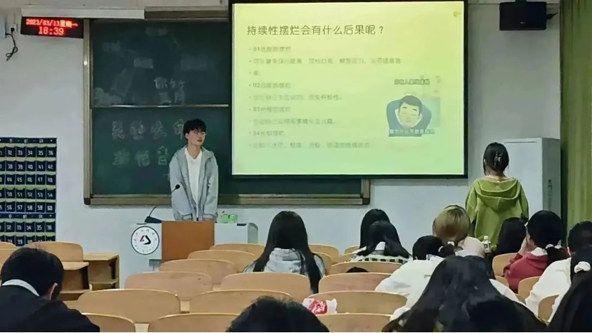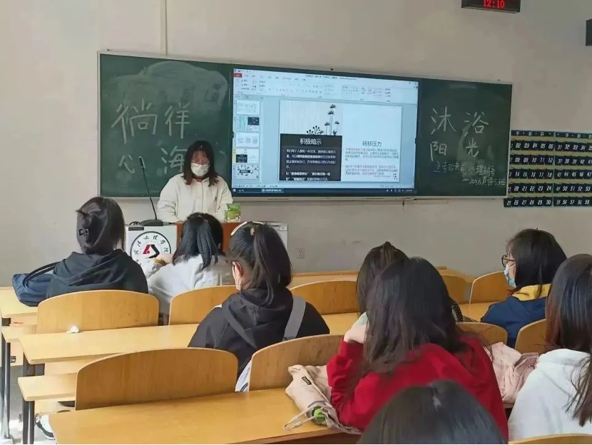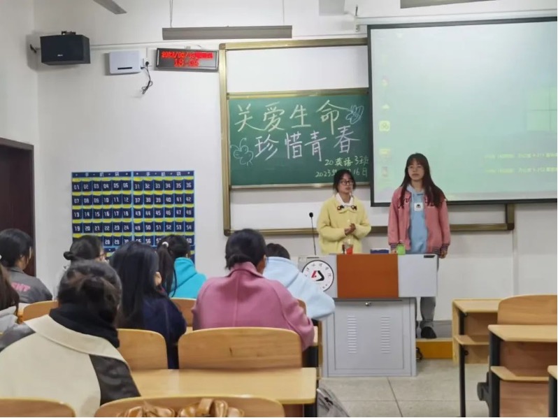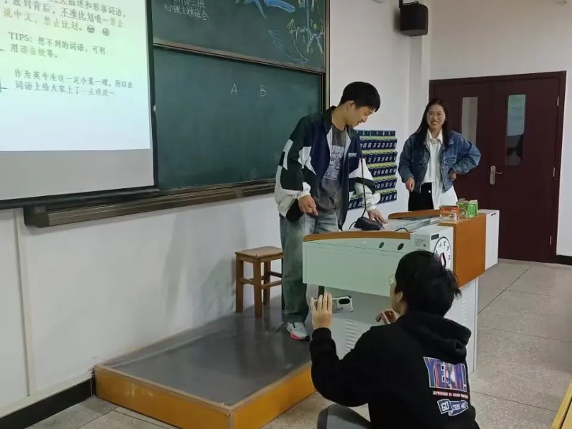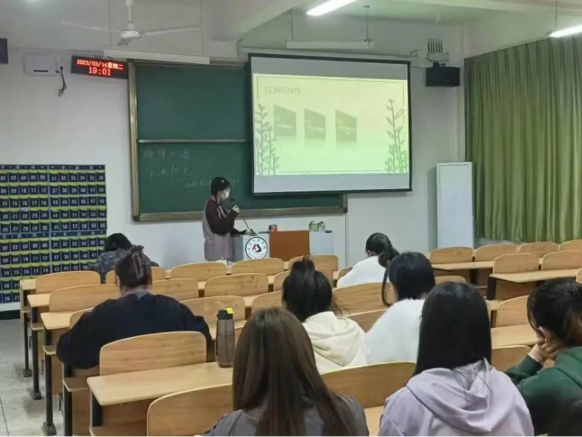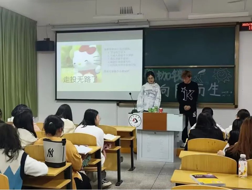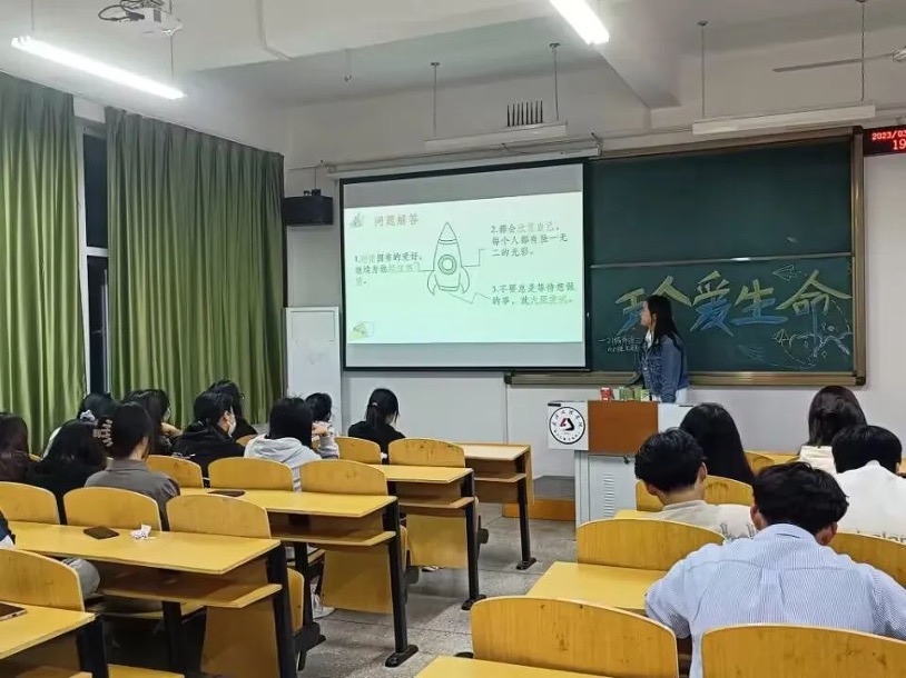 21级外语三班的心理班会主题为:珍爱生命。大家都认真地聆听心理委员的分享,也积极地参与讨论。在班会过程中,插入了一些大家感兴趣的实例和视频。最后的小游戏环节:英语版的你描述我猜,大家积极参与其中,教室里充满着欢声笑语,同时也能打开同学们的心扉,让焦虑的内心放放假,同学之间更为熟悉。