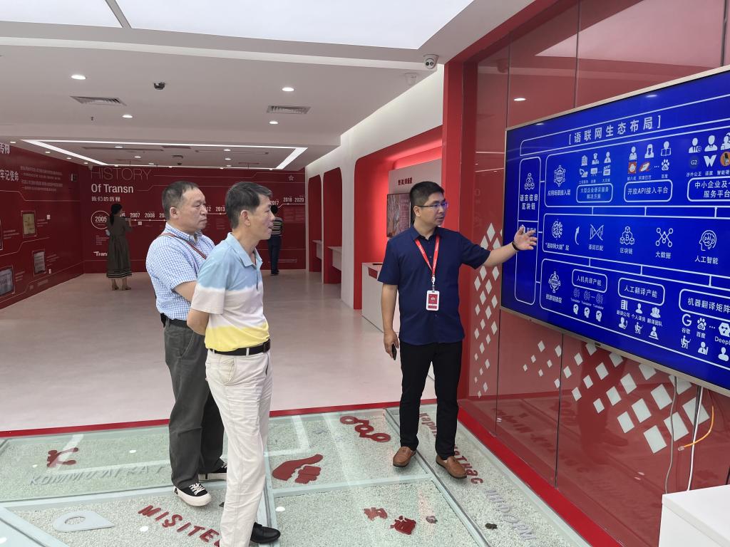 艾永循副董事长一行首先参观了传神科技的研发部门、产能部门、党员活动中心、翻译生产中心等,详细了解了传神科技发展历史、服务领域、产品研发及演示版块,传神科技在人工智能语言服务领域一直处于国内顶尖水平。