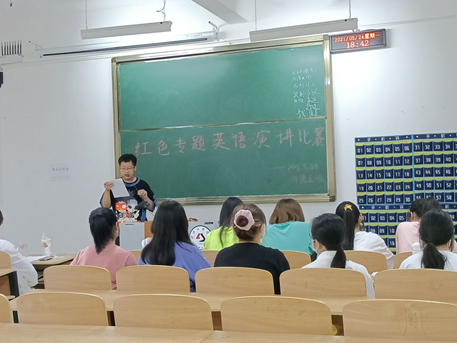 2021.5月24日, 为了庆祝建党一百周年,球友会召开了关于红色专题的特色演讲。今天晚自习外语5班在四栋218举行了演讲活动.首先由靳恒阳班长讲解了演讲流程,接着六位同学轮流进行演讲。他们的演讲精彩分层,声情并茂,情感丰富。他们都各自用感人的故事讲述了党的长征精神及长征精神在我们这一代是如何体现和怎样写好我们这一代的红色故事。其中一个同学讲到了袁隆平爷爷,讲了他的红色精神,一生为人民服务的态度让我们深受感动,我们当代老员工也应该以理想为帆,努力学习,完善自我,不奢侈浪费,做一个新时代具有奉献意识的老员工!