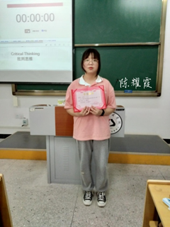 在本次即兴演讲中,黎诗丹、常佳睿和骆思雅三位同学荣获本次演讲比赛一等奖;黄宇、靳恒阳、李豪、张天赫、谭玉环荣获本次演讲比赛二等奖;徐蓉、陆泽玮、张佳新、谭莉娜、林茹雪、王锦、陈耀霞荣获三等奖。